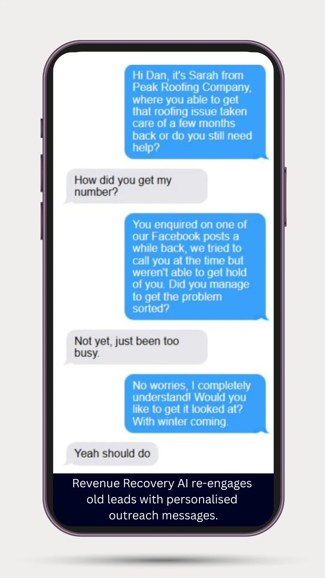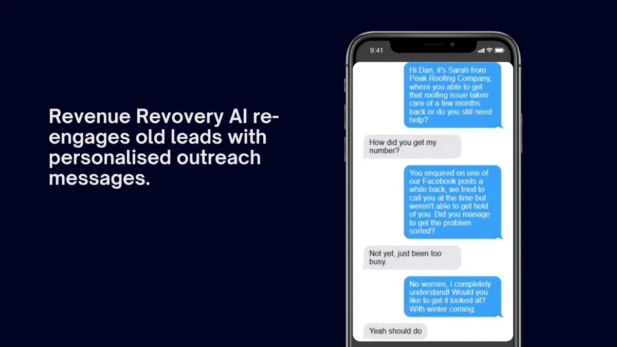 We build a fully functioning Revenue Recovery AI for your business, it will be trained on your company information so will be able answer any questions and qualify leads against your criteria.